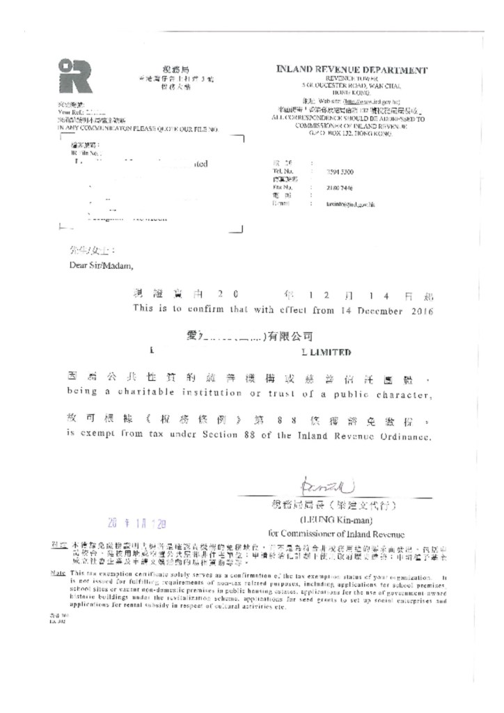 – 申請免稅慈善團體的88牌需要向稅務局提出申請,由慈善捐款組負責審批。