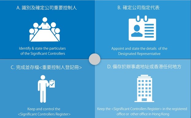 政府對《公司條例》作出修訂,訂明在香港成立的公司須識別對其有重大控制權的人 (“ 重要控制人 ”),並須備存重要控制人登記冊,供執法人員在提出要求後查閱。同時間,每間公司需指定一位人士出任公司代表,以向執法人員提供協助解答有關重要控制人登記冊事宜。