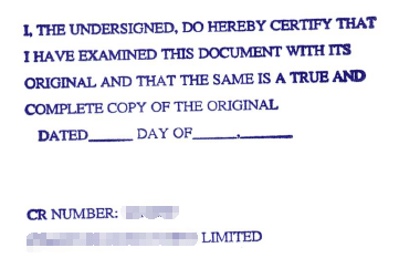 Only a designated qualified professional (i.e., the “CPA") can provide a certified copy service for a document suitable for commercial operations. At the same time, the format of the certified copy must also meet the specified requirements: the Certifier must Signed and dated copy (with full name clearly printed below the signature), clearly indicating his/her position. The certifier must also clearly indicate (or a sentence of similar meaning) that the copy is a true copy and indicate the number of pages, and witness the signature of the person concerned on the document.
